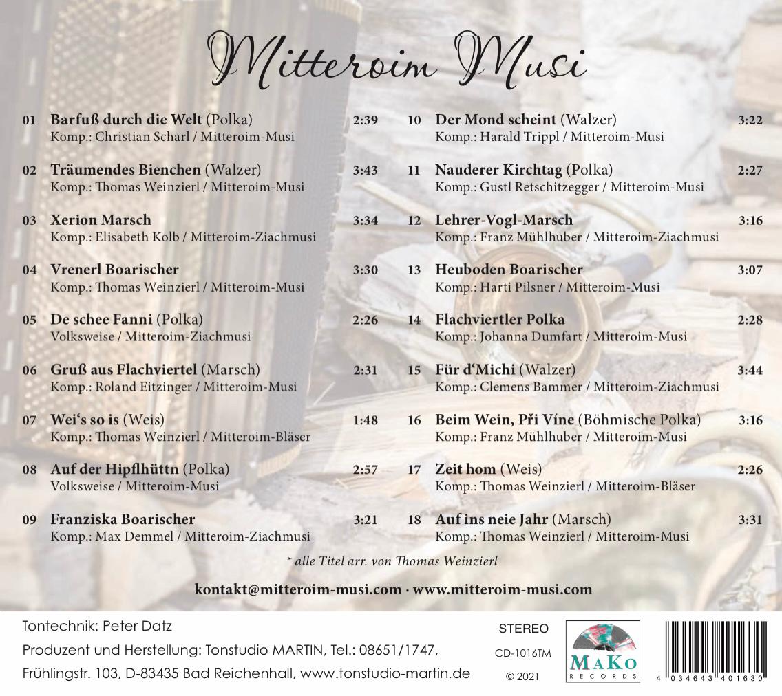 kontakt@mitteroim-musi.com mit Voraus-Überweisung (Bankverbindung s. unten) per